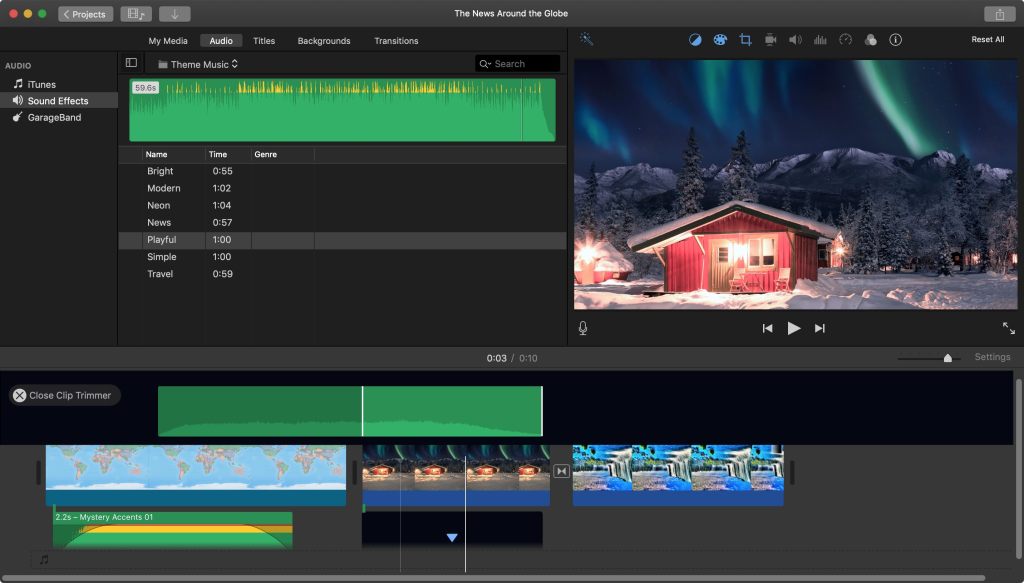Fitur-fitur yang ada di Imovie adalah :